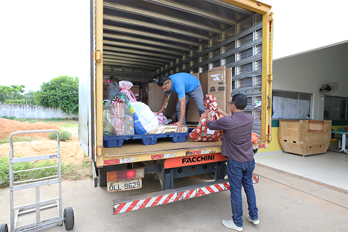 A cerimônia de entrega oficial dos presentes aos Correios aconteceu momentos antes da chegada a Escola Jacinto Bispo Arantes, no hall do Edifício Sede do TCE/TO, com as presenças do Presidente da Corte, Conselheiro Napoleão de Souza Luz Sobrinho, do superintendente dos Correios no Tocantins, Roberto Wiliam de Farias, o coordenador da Campanha nos Correios, Juciclei Mourão, o presidente do Sindicato dos Servidores do TCE (Sinstec), Seledônio Lima Júnior, do servidor dos Correios Daniel Pereira Martins, que atuou como Papai Noel e Renata Cláudia Paes, a Mamãe Noel.