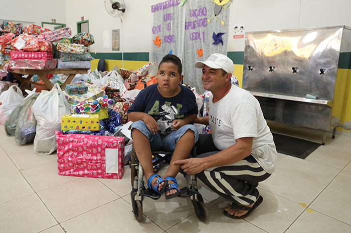 Entre esses presentes, um muito especial, o do garoto Miguel Ferreira de Carvalho, 9 anos, aluno da 2ª série do ensino fundamental. Ele é cadeirante, nasceu com hidrocefalia (acúmulo de líquido excedente nos espaços normais dentro do cérebro) e na cirurgia ficou com paralisia cerebral. Miguel perdeu a mãe para o vírus da Covid-19 há um ano e só tem o pai para cuidar dele, o vendedor Peterson Ferreira de Carvalho. O garoto ganhou uma cadeira de rodas nova, já que a dele estava velha e muito apertada.