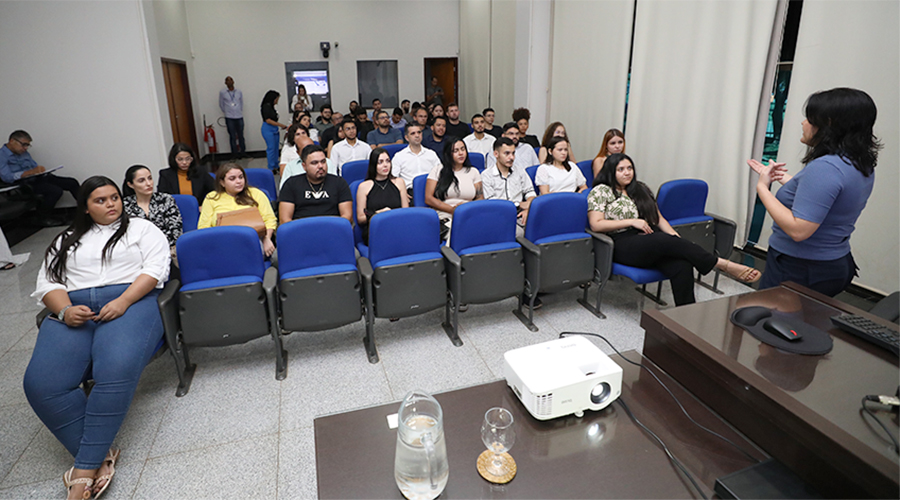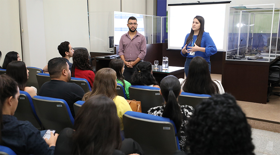 Iniciada a visita pelo Pleno do TCE/TO, com a palestra da auditora de Controle Externo Carolina Vieira de Paula, os acadêmicos ouviram sobre as competências constitucionais conferidas ao Tribunal de Contas do Estado, em especial a de fiscalizar a gestão para melhor aplicação dos recursos públicos em prol do bem-estar social.