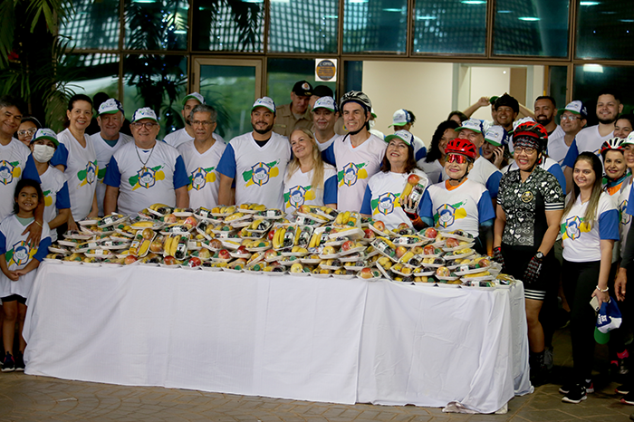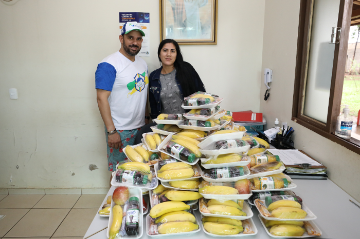Ao final do evento, cerca de 100 kits de café da manhã com banana, maçã, barra de cereal e suco foram doados para a Casa de Apoio Vera Lúcia, onde a funcionária Lessandra recebeu os produtos das mãos do servidor do TCE/TO Raimundo Monturil Neto.