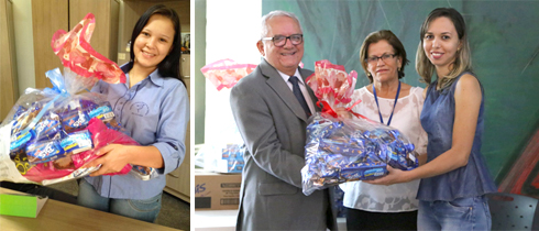 Com a arrecadação proveniente dos servidores do Tribunal foram montadas três cestas grandes de chocolate entregues à Semente do Verbo, Fazenda da Esperança Feminina e ao Lar Batista de Luzimangues, ocasião em que a representante da instituição, Aline Saraiva, recebeu a doação durante celebração da páscoa, na manhã desta quarta-feira, 23, no TCE/TO.