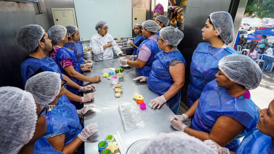 A oficina de robótica, com um robô interativo, foi uma das atrações que mais despertaram a curiosidade das crianças e dos adultos. As famílias também puderam aprender a fazer massas salgadas e doces durante cursos que estimularam o empreendedorismo.