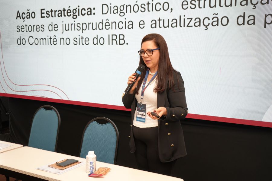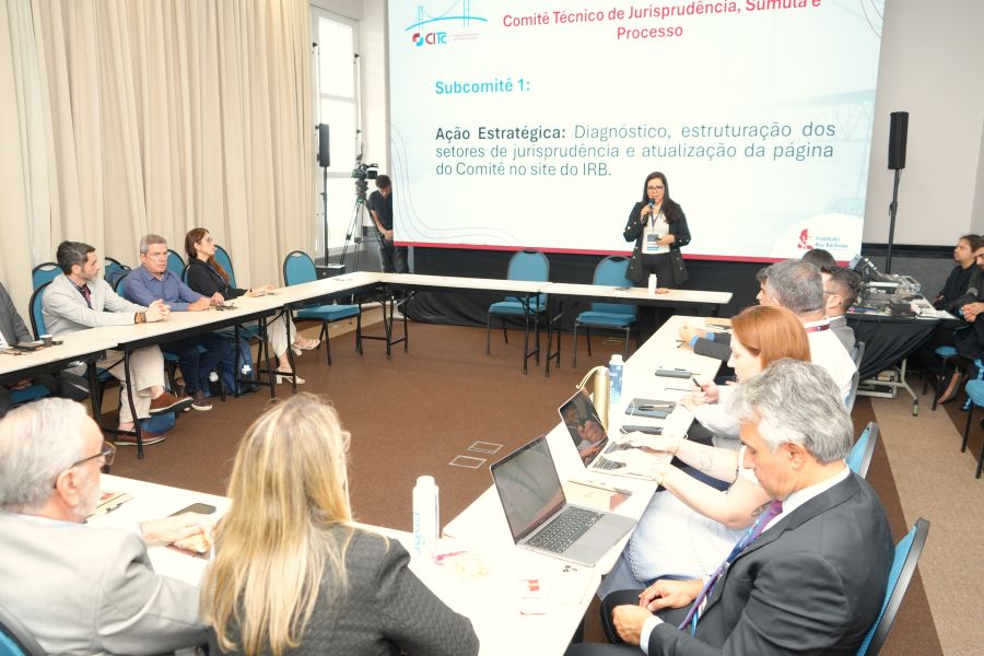 A servidora Khenia Rúbia Franco Nunes, coordenadora do Comitê de Jurisprudência, Súmula e Processo do Instituto Rui Barbosa (IRB), conduziu a reunião do grupo técnica. Ela apresentou o relatório de gestão, consolidando as ações do biênio e o avanço das iniciativas dos cinco subcomitês, entre elas: diagnóstico e fortalecimento dos setores de jurisprudência; mapeamento de sistemas de tecnologia; boletins de jurisprudência e legislação comentada; e ações de integração entre tribunais. A apresentação reforçou a contribuição do comitê para a uniformidade e profissionalização da jurisprudência dos Tribunais de Contas.