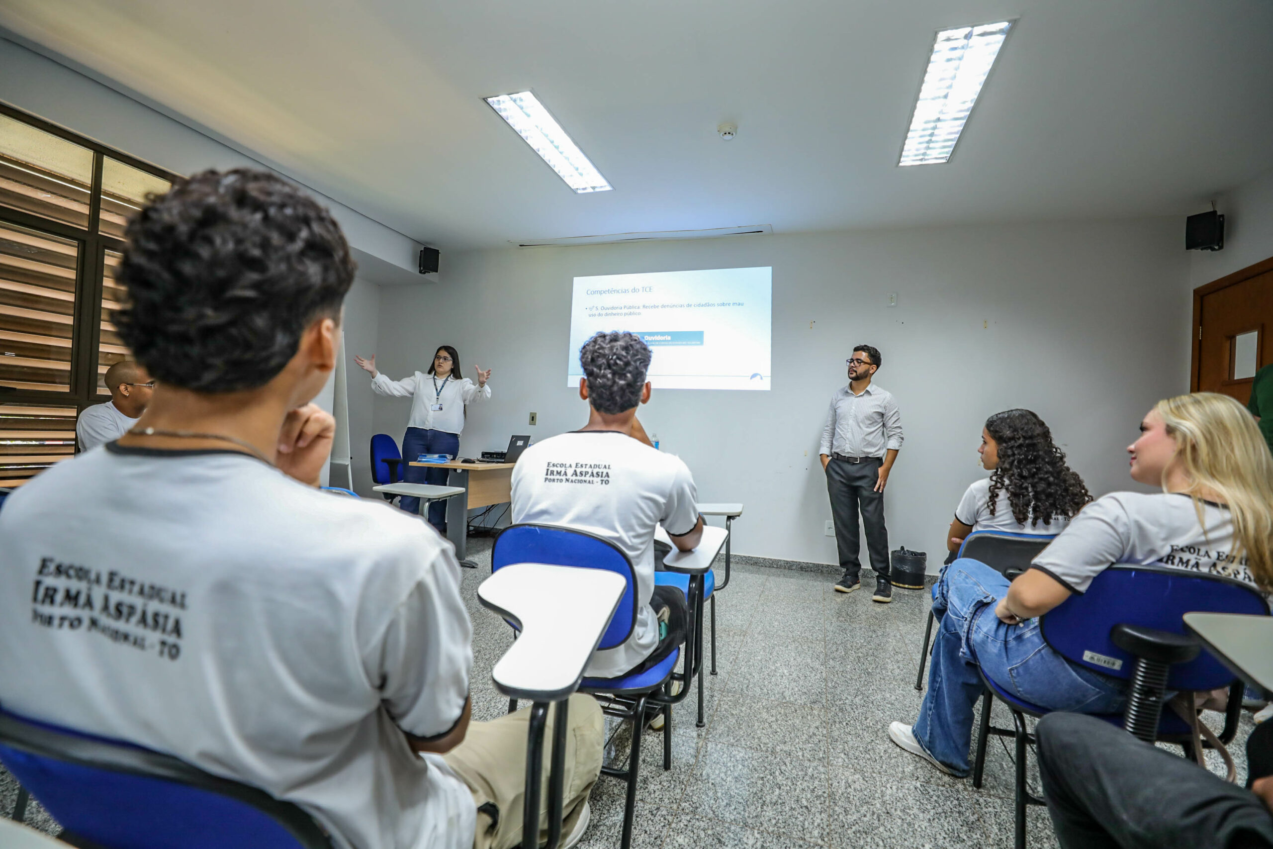 Alunos do 9º ano do ensino médio do Colégio Estadual Irmã Aspásia, de Porto Nacional, participaram, nesta terça-feira, 7, e quarta-feira, 8, de visitas monitoradas ao Tribunal de Contas do Estado do Tocantins (TCETO). A atividade teve como objetivo apresentar o funcionamento da Corte e reforçar a importância do controle social na fiscalização dos recursos públicos.