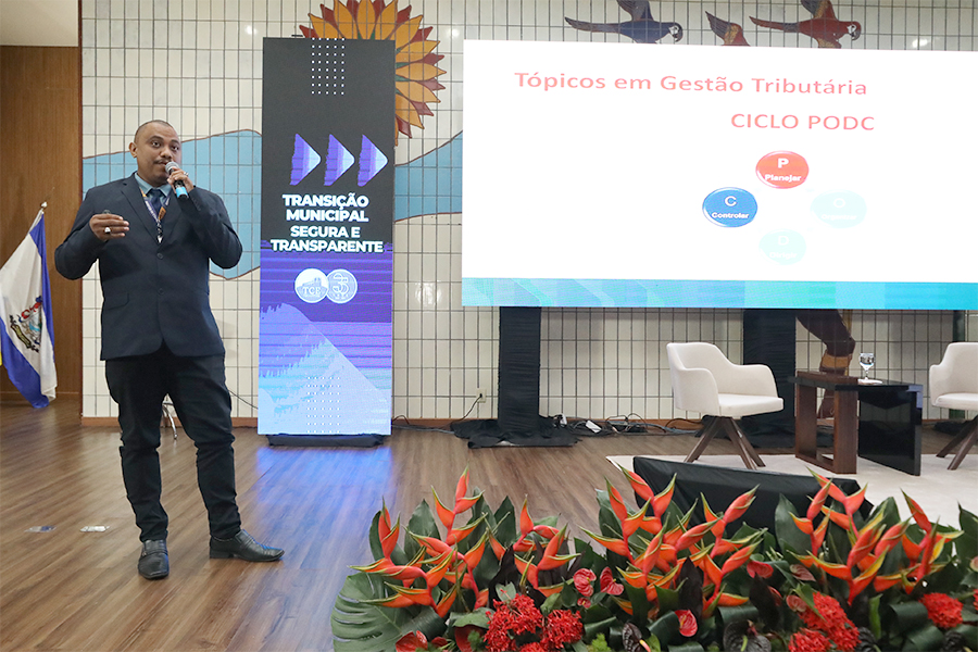 Arlan Marcos Lima Sousa, auditor de Controle Externo e diretor da 6ª Diretoria, abordou a gestão tributária municipal, destacando pontos como a necessidade de consolidação de normas tributárias e a revisão da Planta Genérica de Valores (PGV). Ele reforçou que uma gestão eficiente da arrecadação reduz a dependência de repasses estaduais e federais, promovendo maior autonomia para os municípios .