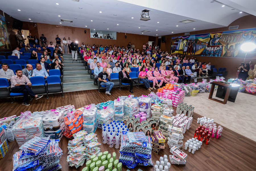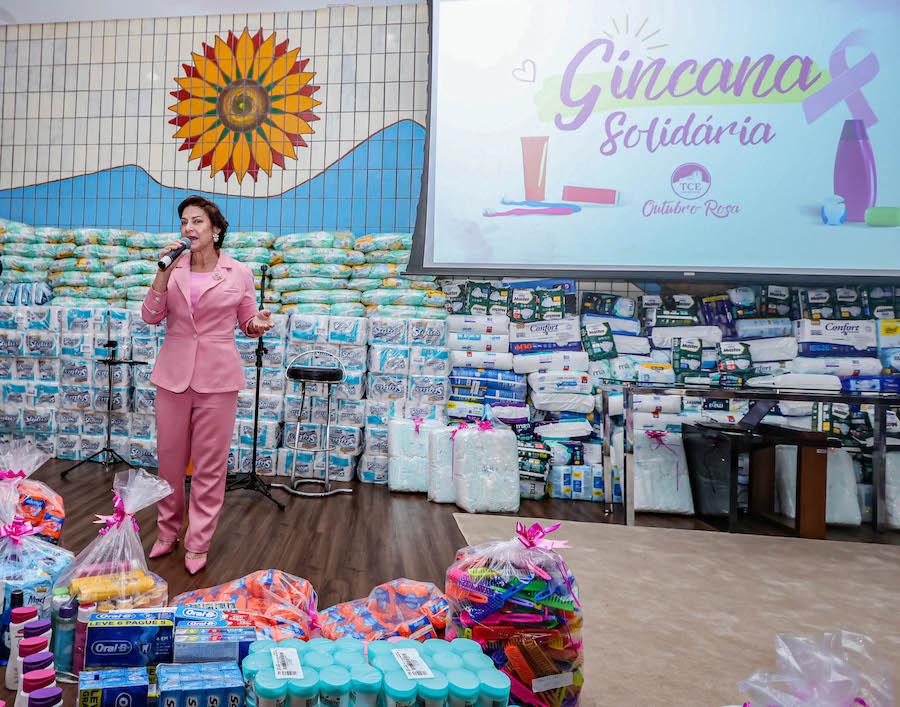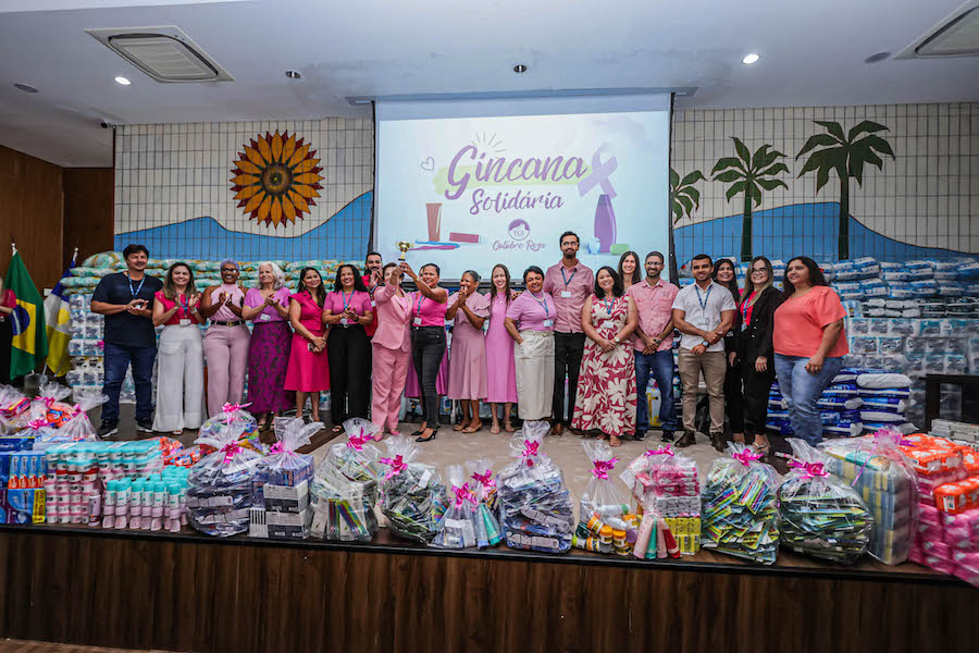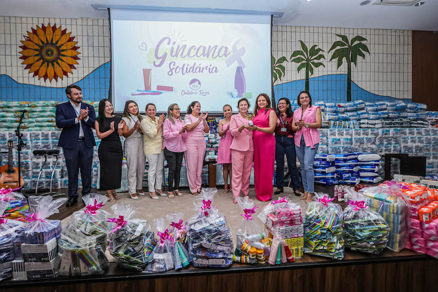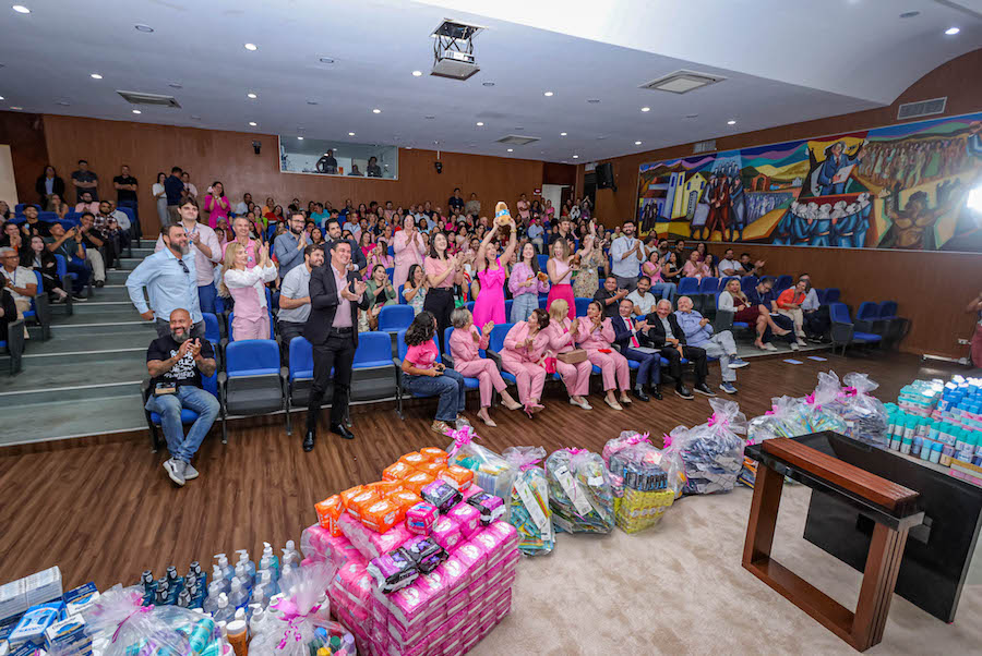Uma verdadeira corrente de solidariedade e conscientização sobre o câncer de mama tomou conta do Tribunal de Contas do Estado do Tocantins (TCETO) neste mês de outubro. Ao todo, foram arrecadados 29.183 itens de higiene pessoal durante a Gincana Solidária Outubro Rosa, que envolveu 259 servidores distribuídos em 13 equipes. Todo o material foi exposto no auditório do Tribunal e, em seguida, entregue à Liga Feminina de Combate ao Câncer de Palmas na manhã desta sexta-feira, 24 de outubro, durante a celebração do Dia do Servidor Público.