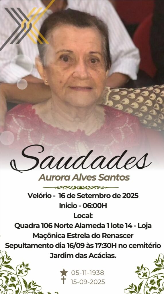 Aurora Alves Santos, 86 anos, faleceu na noite desta segunda-feira, 15 de setembro, em Palmas