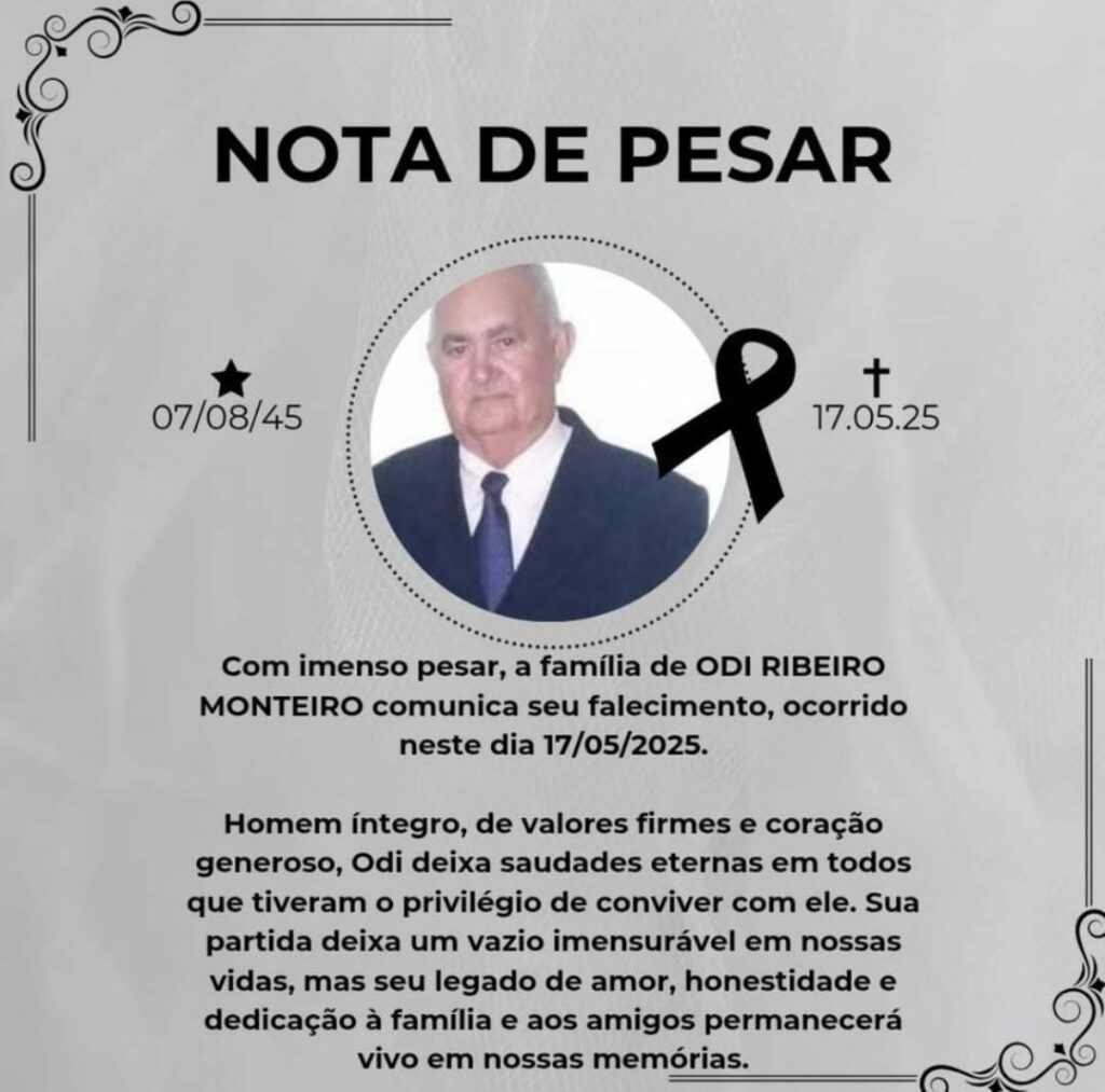 O Tribunal de Contas do Tocantins (TCETO), por meio de seus membros e servidores, lamenta, profundamente, o falecimento do senhor Odi Ribeiro Monteiro, tio do servidor Raimundo Nonato Gomes Monturil Neto, o Netinho.