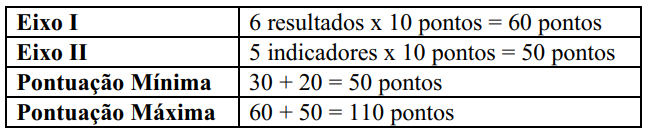 De acordo com o Edital, a somatória das pontuações obtidas nos Eixos I e II do processo avaliativo, obedece a seguinte tabela: