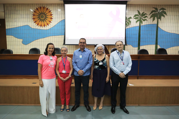 Participaram também da abertura a diretora de Recursos Humanos, Osmarina Rodrigues de Andrade, a coordenadora da COSAU, Marleide Alexandre, e a representante da Liga, Jaqueline Bittar, que fez uma explanação sobre o trabalho da entidade que existe há 21 anos e vive de doações. Ela se tornou voluntária há cinco anos depois que curou um câncer de mama.