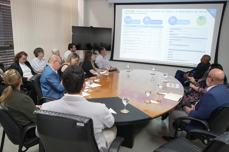 O Tribunal de Contas do Estado do Tocantins (TCETO) realizou, no dia 24 de novembro de 2025, uma reunião de análise estratégica com a participação de membros do Comitê de Governança, gerentes de projetos e equipes técnicas. O encontro teve como objetivo avaliar os principais avanços institucionais do ano, com foco no monitoramento dos indicadores do Plano Estratégico 2023–2030, na execução dos projetos ligados ao Plano de Gestão 2025–2026 e na apresentação dos resultados da Pesquisa de Satisfação 2025.