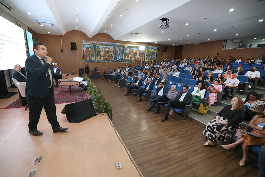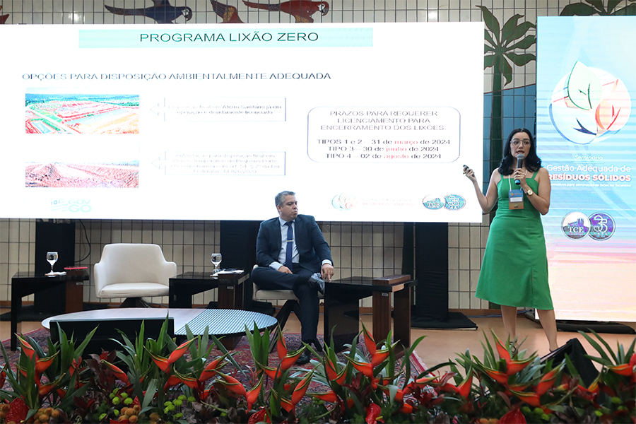 A superintendente de desenvolvimento sustentável e resíduos sólidos da Secretaria Estadual de Meio Ambiente e Desenvolvimento Sustentável de Goiás, Kaoara Batista de Sá, discorreu sobre as “Vantagens e Desafios da Implantação de Microrregiões”, com mediação de Thiago Lopes Benfica, secretário das Cidades, Habitação e Desenvolvimento Regional do Tocantins.