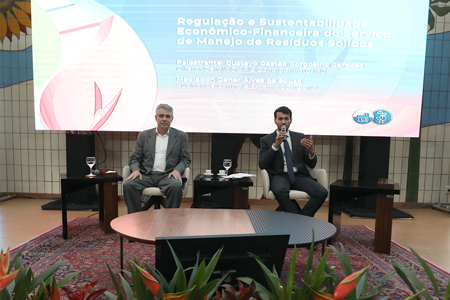 Gustavo Gastão Corgosino Cardoso, diretor-geral da Agência Reguladora Intermunicipal dos Serviços de Saneamento da Zona da Mata, em Minas Gerais, deu palestra sobre “Regulação e Sustentabilidade Econômico-Financeira do Serviço de Manejo de Resíduos Sólidos”, mediada por Dener Alves de Souza.
