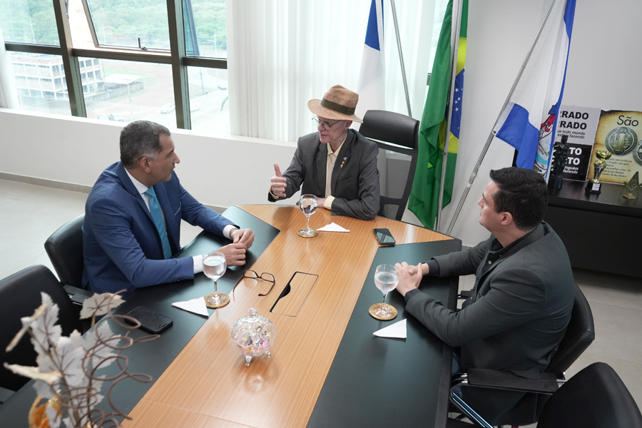 O presidente do Tribunal de Contas do Estado do Tocantins (TCETO), conselheiro Alberto Sevilha, e o chefe de gabinete, Dimas Baia, receberam nesta quarta-feira, 12, o secretário estadual da Educação, Hércules Jackson, em visita institucional à Corte.