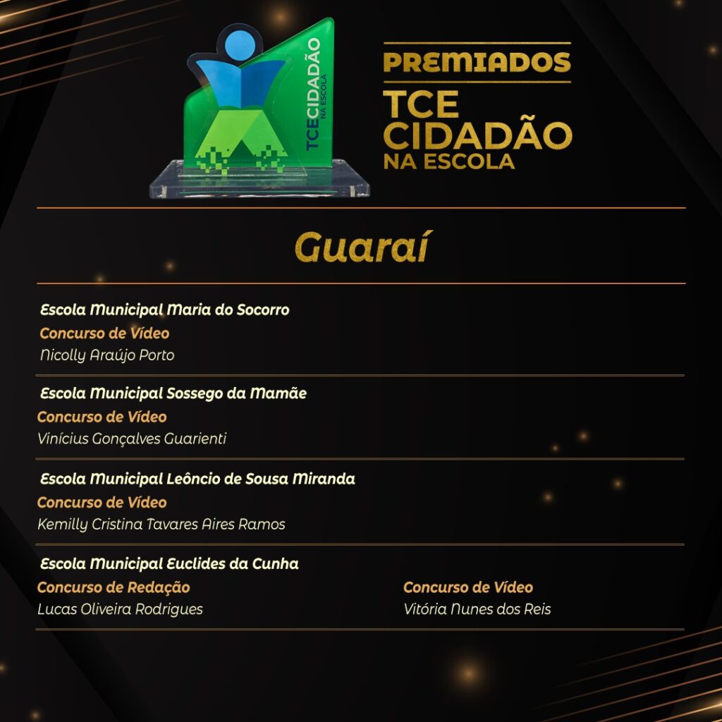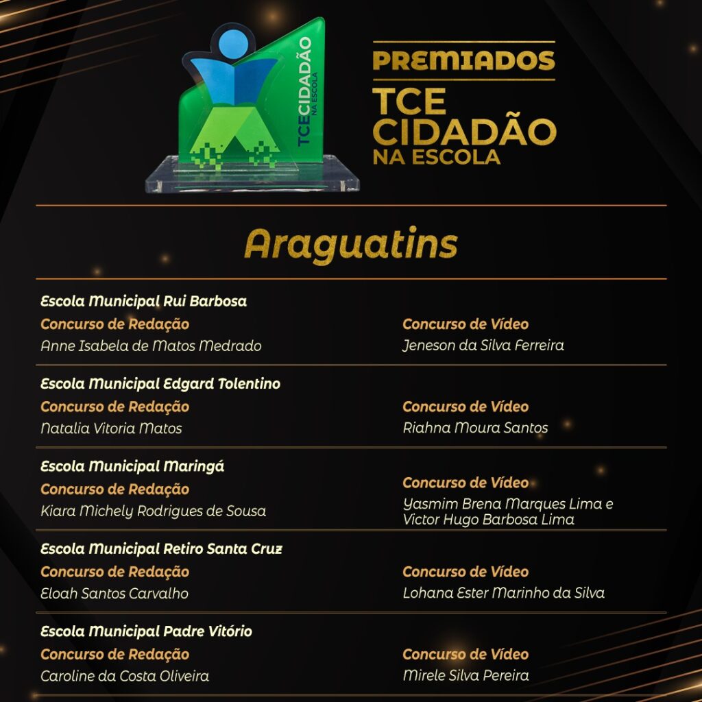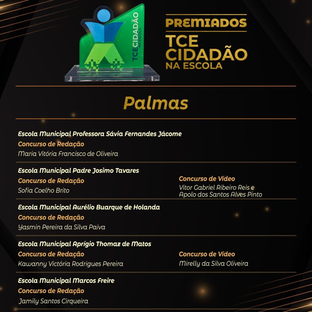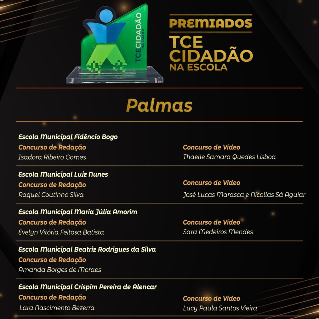 Além da Evelyn Vitória, mais 61 alunos foram premiados com tablets e leitores de livro digital (Kindle). Ao todo, mais de 10 mil estudantes, de 39 escolas, foram impactados com o projeto, desses, 167 foram classificados com os melhores trabalhos. Seis municípios participaram da iniciativa: Araguatins, Colinas, Guaraí, Gurupi, Palmas e Porto Nacional. O projeto teve objetivo de levar informações e orientações sobre as atribuições do Tribunal a estudantes do ensino fundamental do 6º ao 9º ano.
