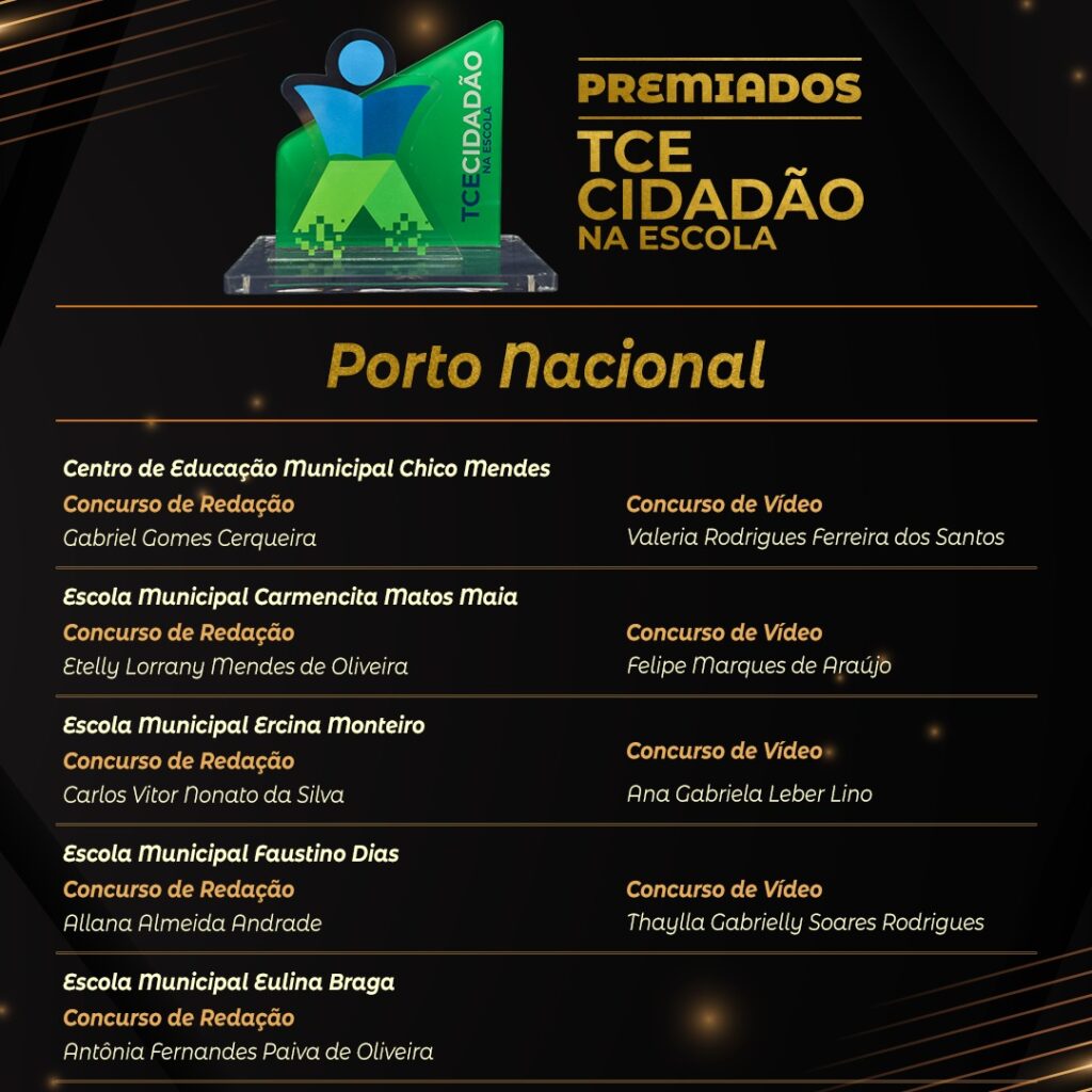 A cerimônia de premiação aconteceu nesta sexta-feira, 16 de dezembro, no auditório do Tribunal de Contas, e uma das apresentadoras foi a estudante Isabelle Luayne, 12 anos, aluna da Escola Municipal Darcy Ribeiro, em Palmas, e personagem nas campanhas da Corte para divulgação do projeto. O evento contou ainda com as presenças de entidades parceiras, além de secretários municipais de Educação dos seis municípios e das prefeitas de Guaraí, Fátima Coelho e, de Gurupi, Josi Nunes.