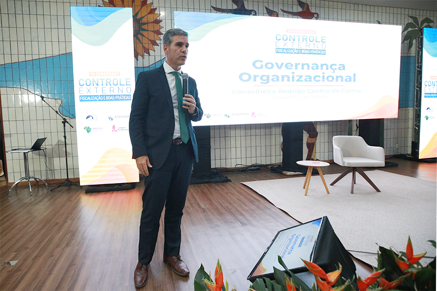 Outra palestra técnica durante o congresso foi do conselheiro do Tribunal de Contas do Espírito Santo, Rodrigo Coelho. Ele falou sobre perspectiva organizacional e de políticas públicas; sobre ações de governo, do ponto de vista que trata sobre direcionamento que o governo é capaz de dar à nação. O conselheiro apontou a diferença entre governança e gestão. “Governança é a função direcionadora e gestão é a função realizadora”, destacou Rodrigo Coelho.