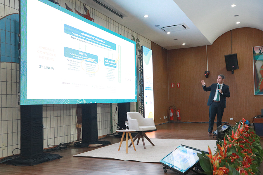 Ele chamou o público para momentos de reflexão sobre o tema e um dos pontos destacados da palestra é o valor do trabalho exercido pelo Controle Interno e contratações públicas. O palestrante abordou também um tema que tem sido bastante utilizado na atualidade, especialmente no setor público. Trata-se do conhecido ESG que significa, em inglês Environmental, Social and Governance. Na tradução para o português, o significado é Ambiental, Social e Governança. De modo geral, o ESG mostra o quanto um negócio está buscando maneiras de minimizar os seus impactos no meio ambiente, de construir um mundo mais justo e responsável e de manter os melhores processos de administração.